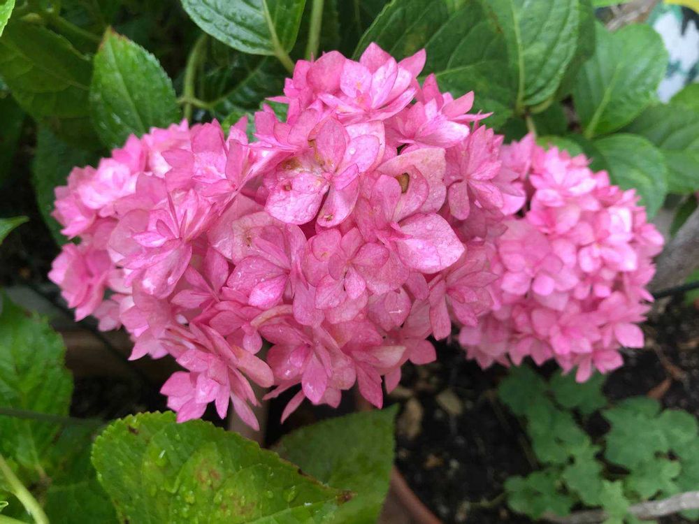 ピンクのアジサイ、☔雨にぬれて素敵ステキでーす。🎉✨😆✨🎊