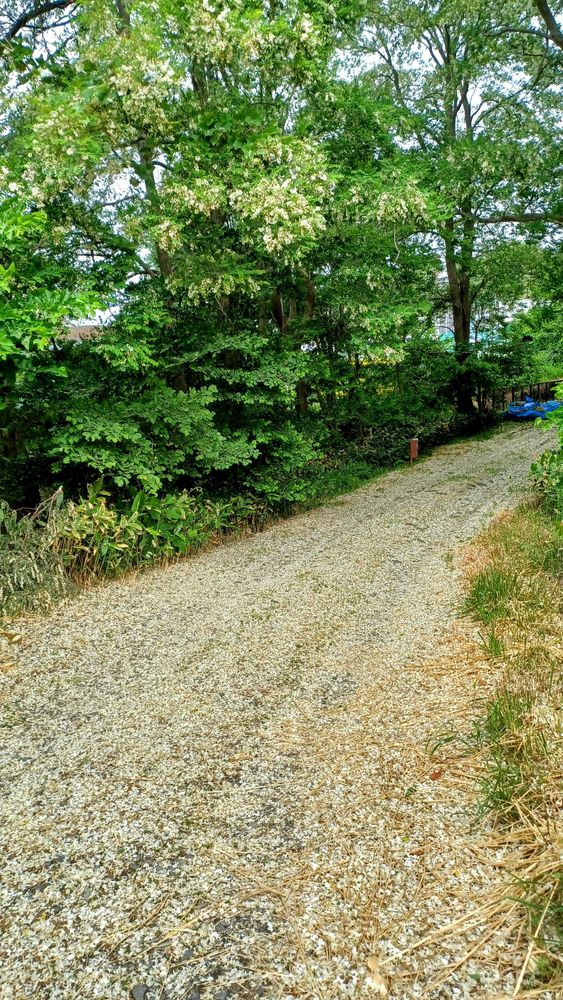 ニセアカシア、花はクリーム色でどことなくフジに似ていて、香りは好みがあるかと思いますが、好きな花です♡
