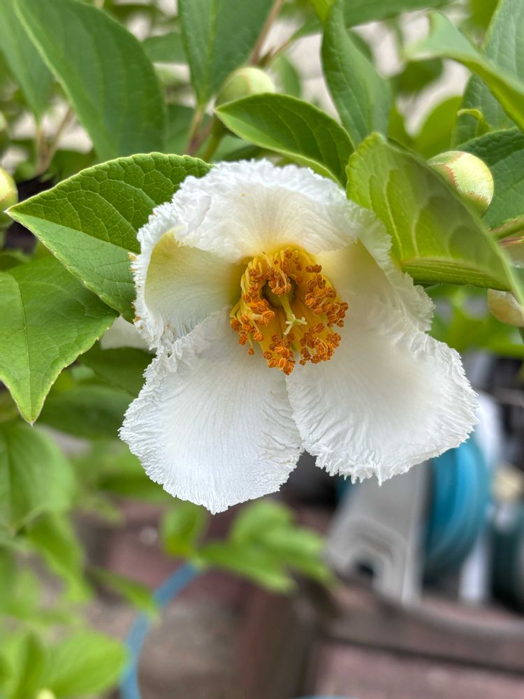 ③④娘宅のシャラの木の花、蕾が〇〇で可愛らしい💗