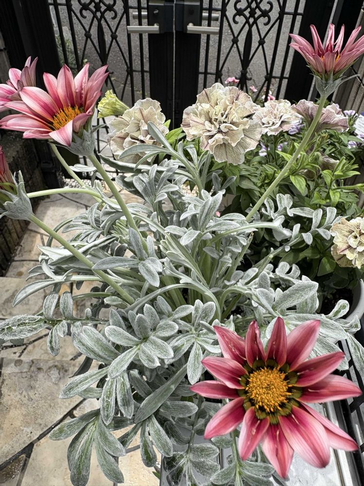 2️⃣3️⃣このシルバーリーフのガザニアがいっぱい咲いて来て、素敵💓