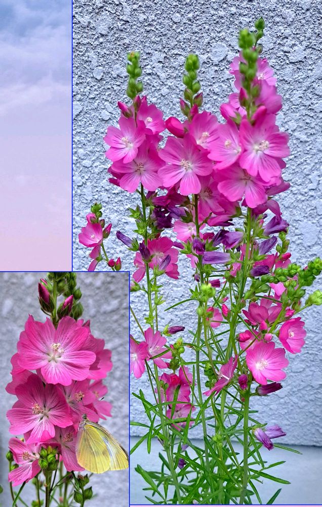 ミニタチアオイ、モンシロチョウ、ジュストショット👏