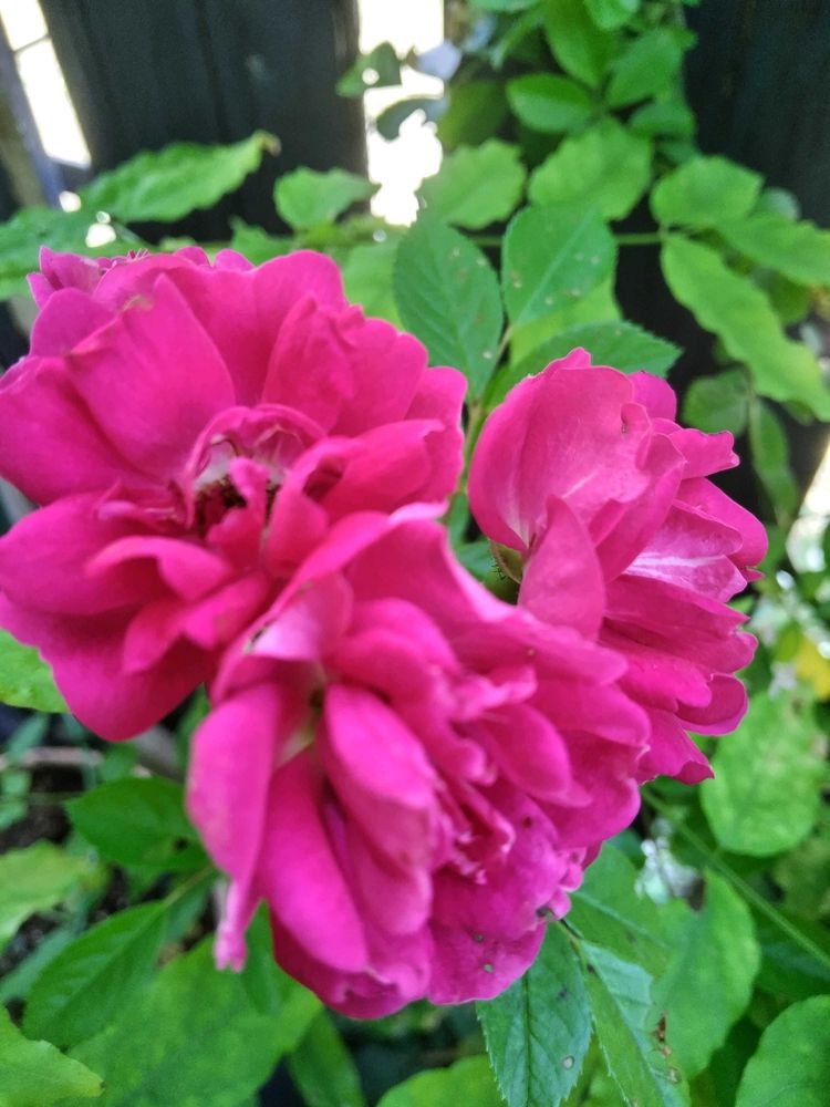 🌹地植えの小さなツルバラ、日陰でも咲いています。