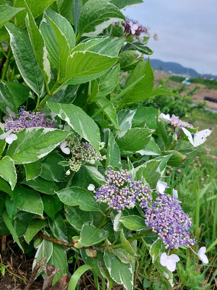 紫陽花が綺麗です。蝶が擬態🦋😃