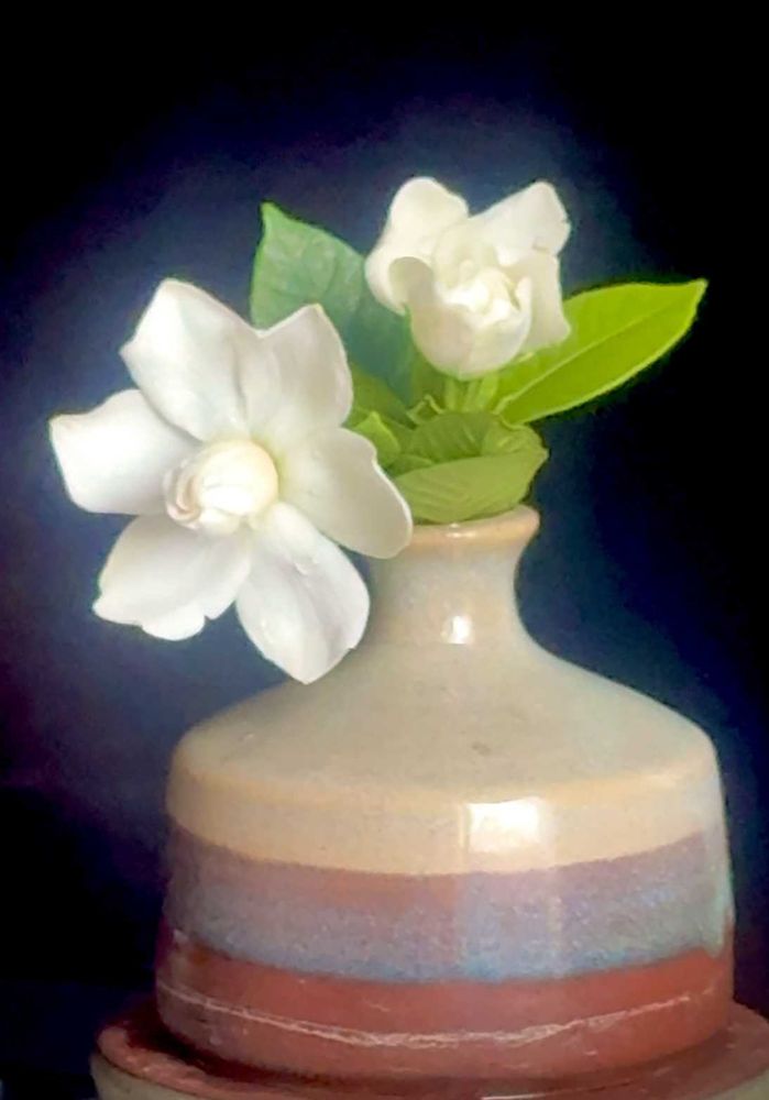 @訳意:Gardenia flowers shine bright and pure white and have a sweet, lovely scenting.