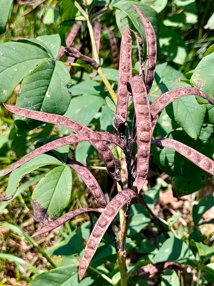 ✽豆果は鞘状で長さ7〜11cm、中に10個以上の種子を入れる