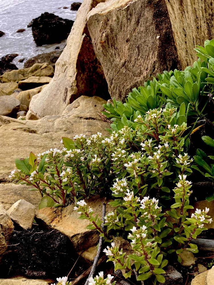 海浜植物は出来るだけ海が入ったら素敵だなぁと思って岩場によじ登りました😅