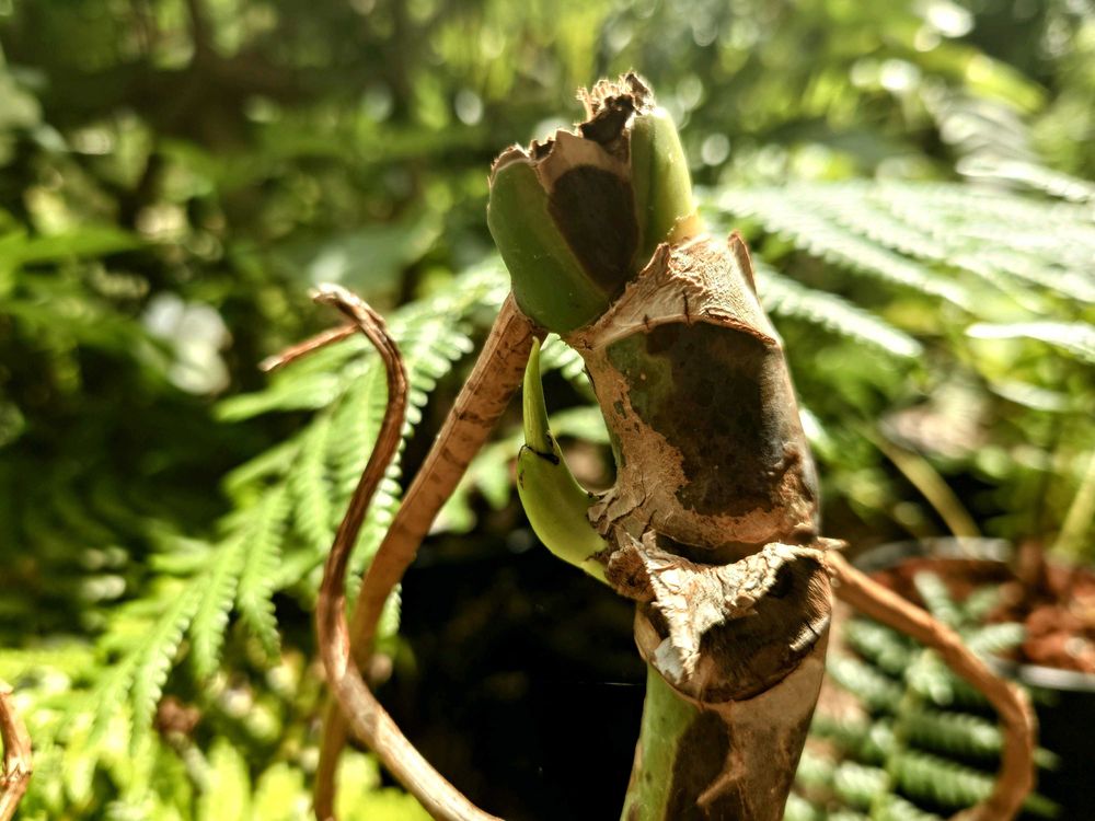カリバナス君は特に変化なし。1ヶ月前に家に来たエスキナンサスもパッと見、変わり映えしませんが新葉は出て来てます。冬に大ダメージを受けたモンステラは思い切って剪定して、天芽挿し。残った方はそのままにしていたら、こっちも新しい芽が出て来ました。楽しいですね。