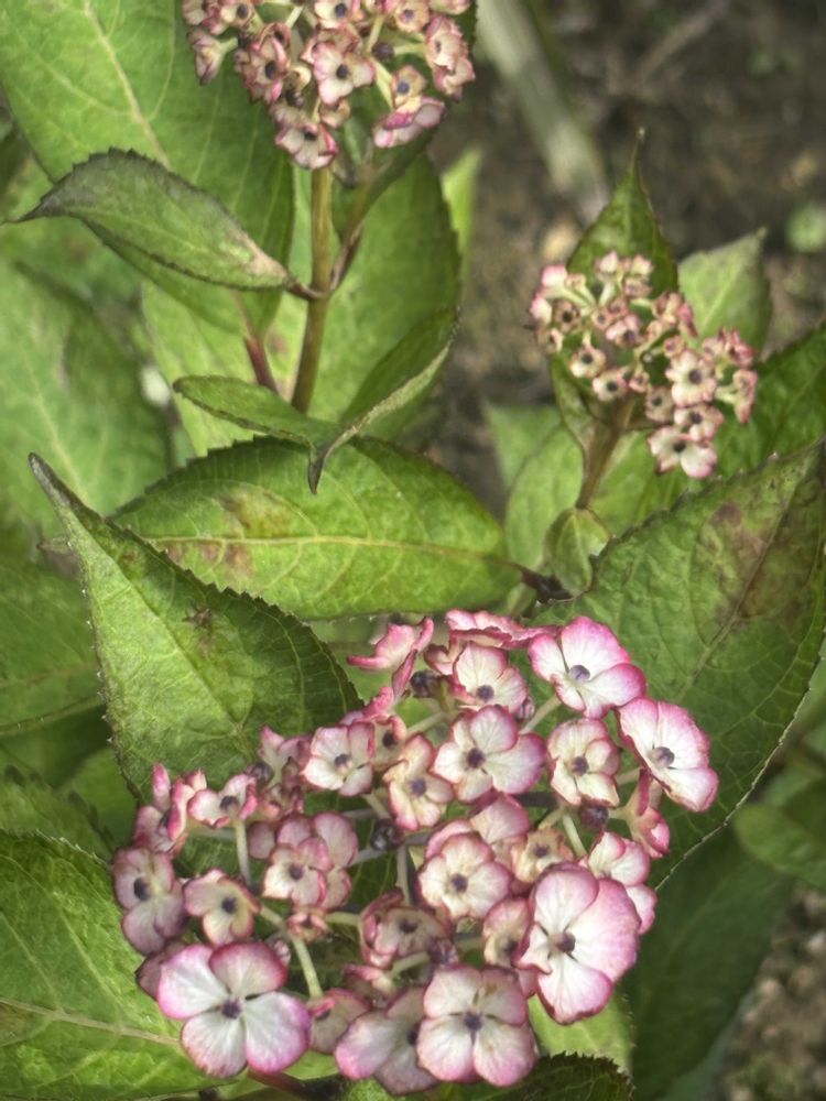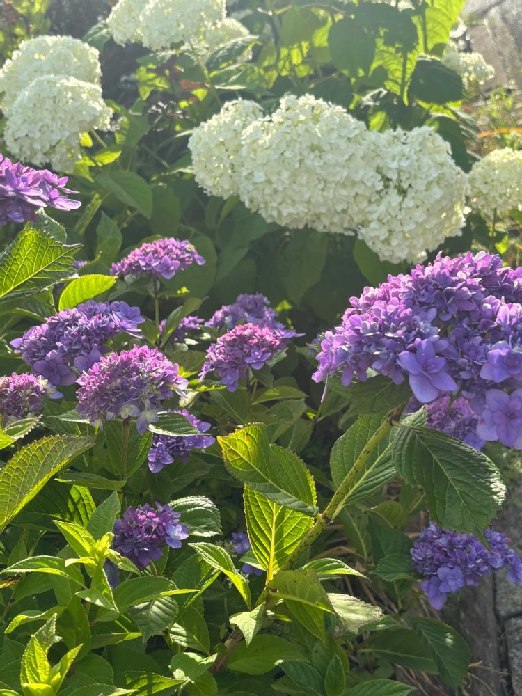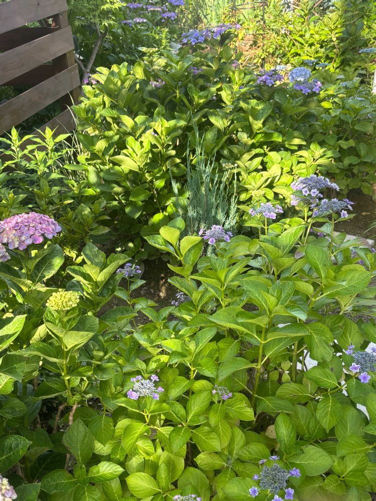 ここから1番奥のおはようまで 紫陽花が並んでます😊 その途中に クレマチスやこれから咲く宿根草フロックスがあります💓