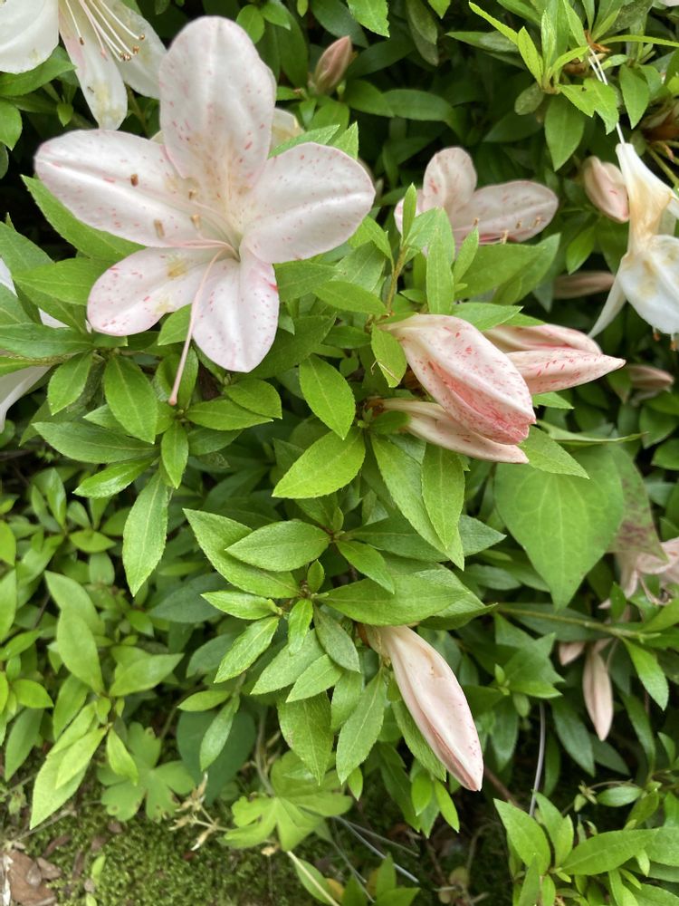 庭の皐月が咲きました。一重咲き、二色花です。赤と白の色々な模様が綺麗です。