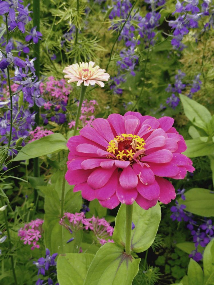 花壇をのぞいたら、もうジニアが