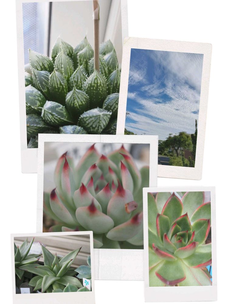 ハオルチア ミラーボール、1週間前の朝空、エケベリア桃太郎、エケベリア ルブラ、エケベリア エボニー