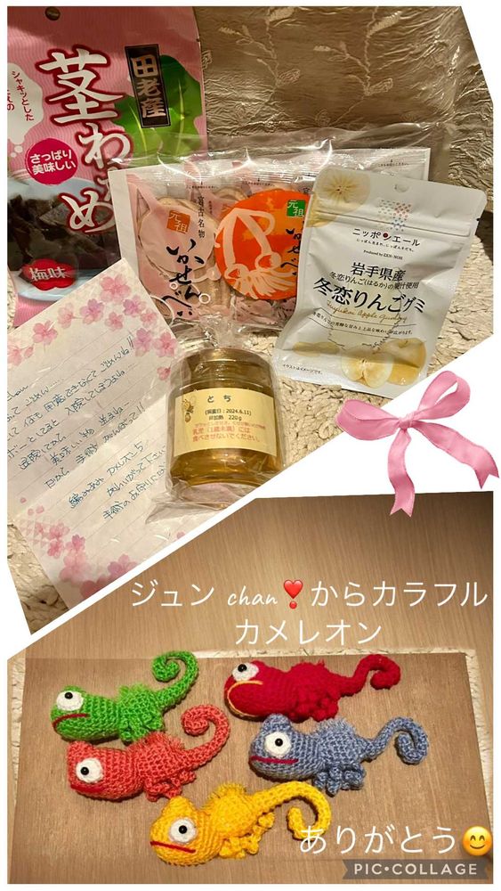 観て〜カラフルカメレオン🦎🦎🦎🦎🦎ジュン chan❣️にお願いして編んで頂きました。