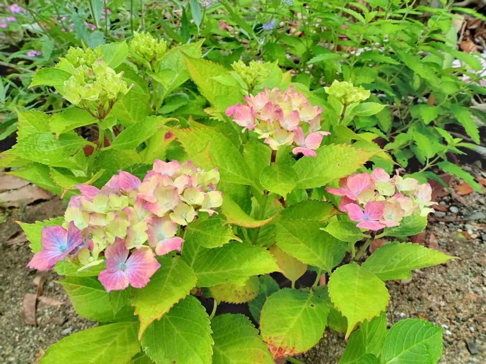 昨年に母の日の翌日の見切り品に巡りあった色変が素敵な紫陽花です💚🩷