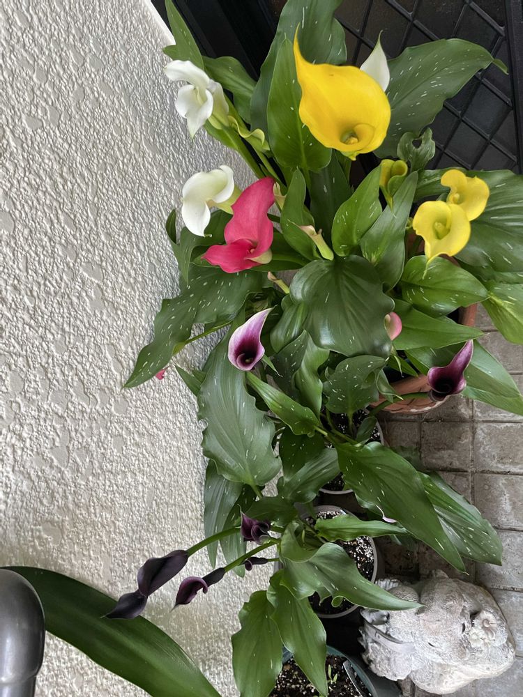 今迄カラーの球根を買って何度か植えで見たこともあったのですが、上手くいったためしが無かったのですが、こちらに越して来て、庭にカラーらしき植物がいくつも残っているのを見て、地植えで育つくらいなら、気候が合っているのかもと思い、試して見ることにしました😊