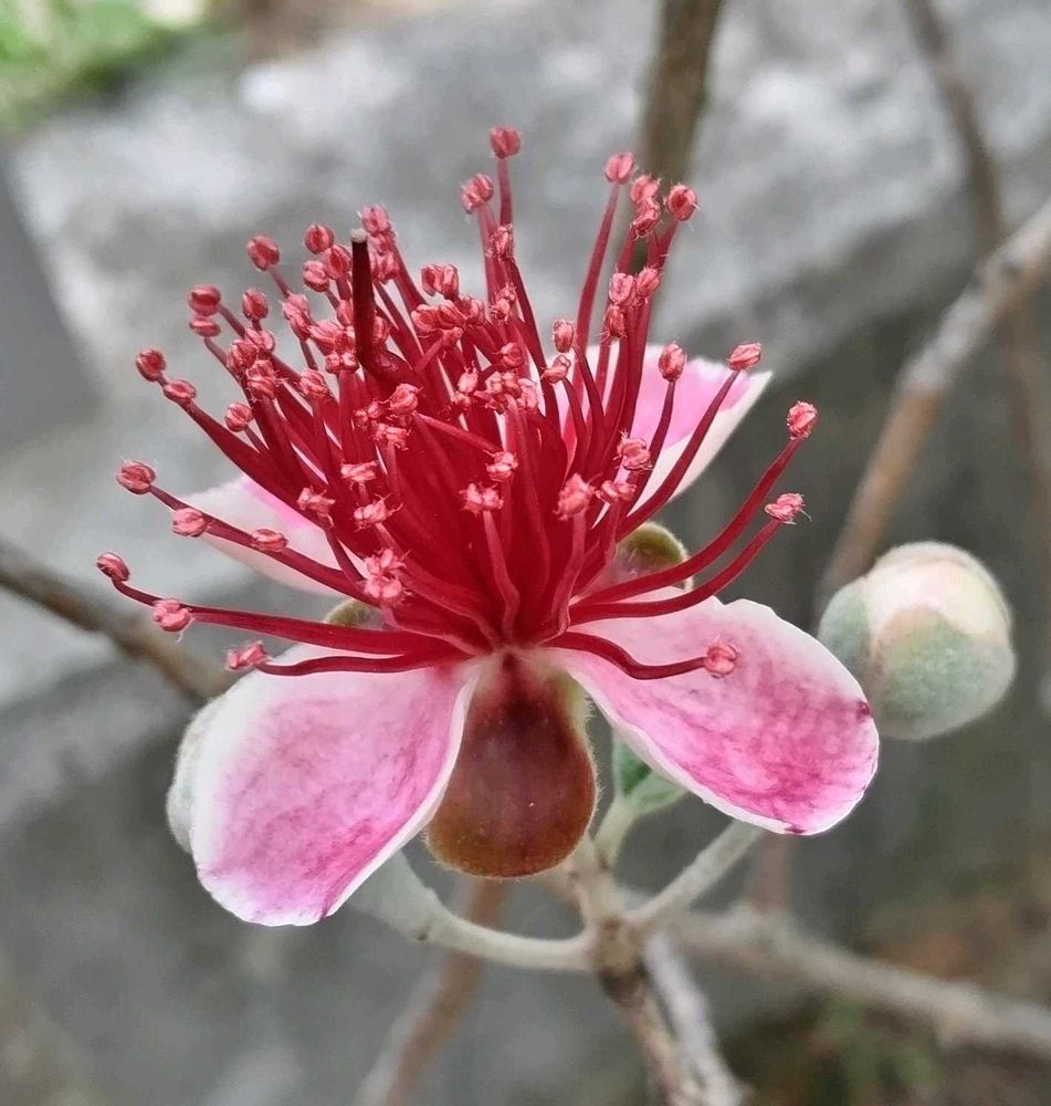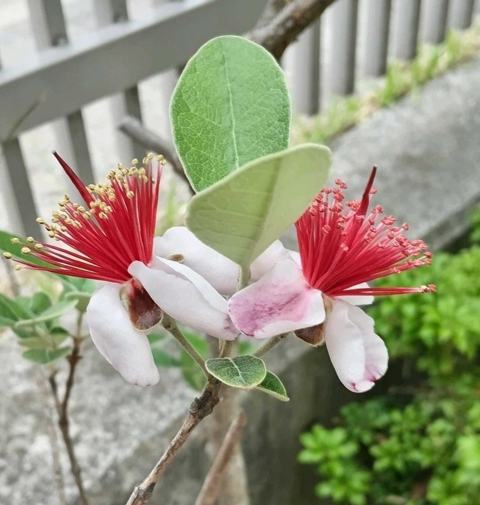 施設に1本だけあるフェイジョアの木に花が咲きました❗️
