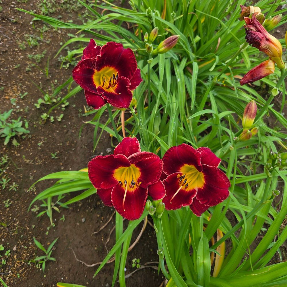 ヘメロカリスの赤や紫系は品種によっては直射日光が強すぎると綺麗に発色しないものもありますが、クリミアンクリムゾンは綺麗に発色してくれますね😆😆