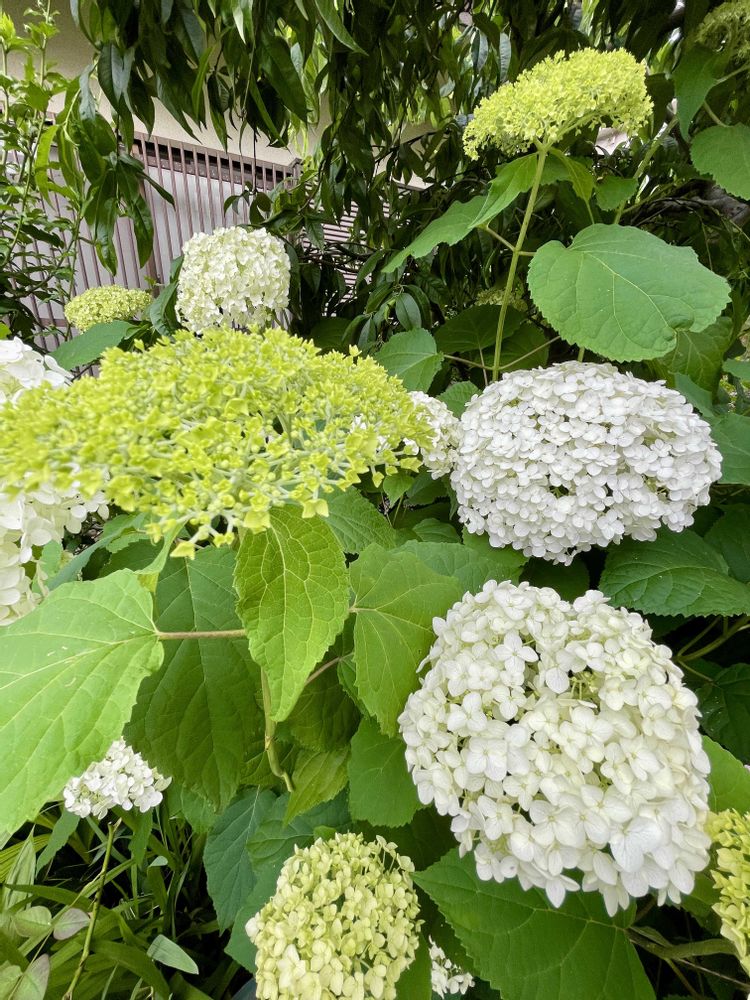 柏葉紫陽花は色変が始まって綺麗ですよ💚🩷🤍
