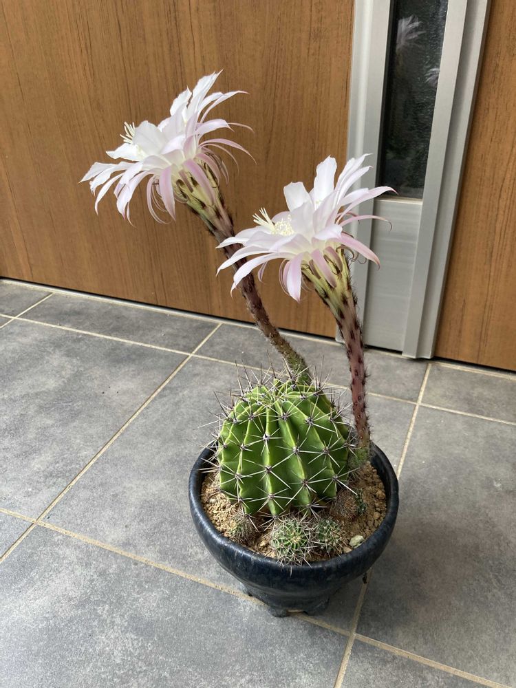 トゲトゲしたサボテンちゃんから大きく美しい花が咲くの不思議です。夜に開いて一日程度しか持たない儚さも、幻想的なお花と合っているんでしょうね…🥹