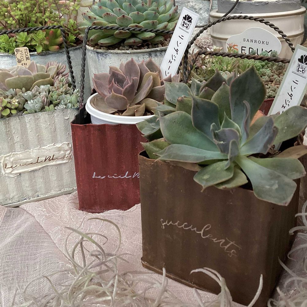 リメ缶、リメ鉢、多肉チャンお迎え出来て良かったですネ✊‼️