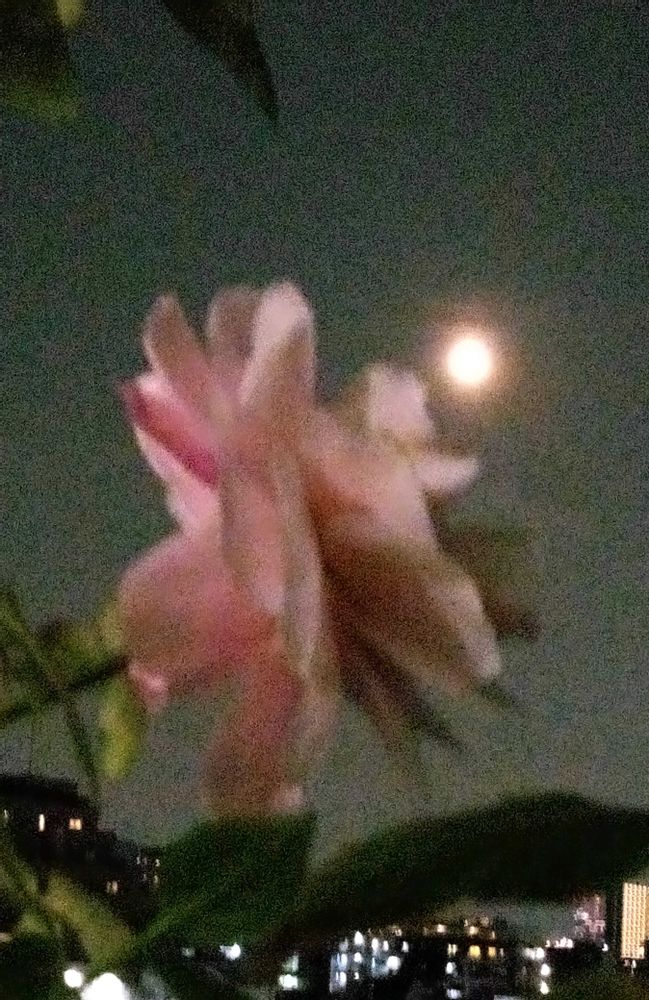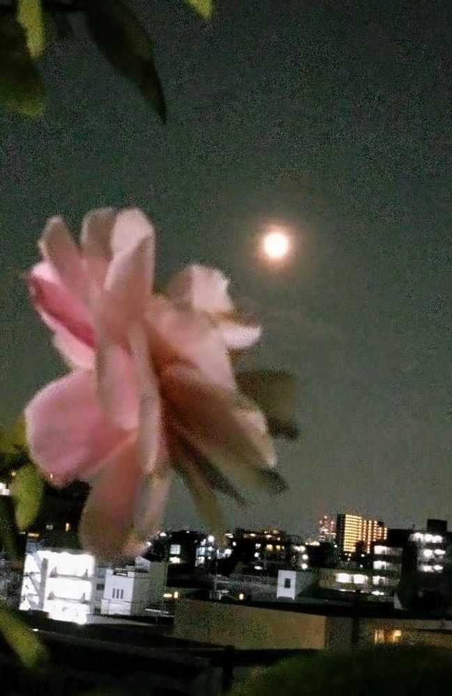 丁度ディスタントドラムス🌹が開花中で🍓🌕️コンバンワでした😊