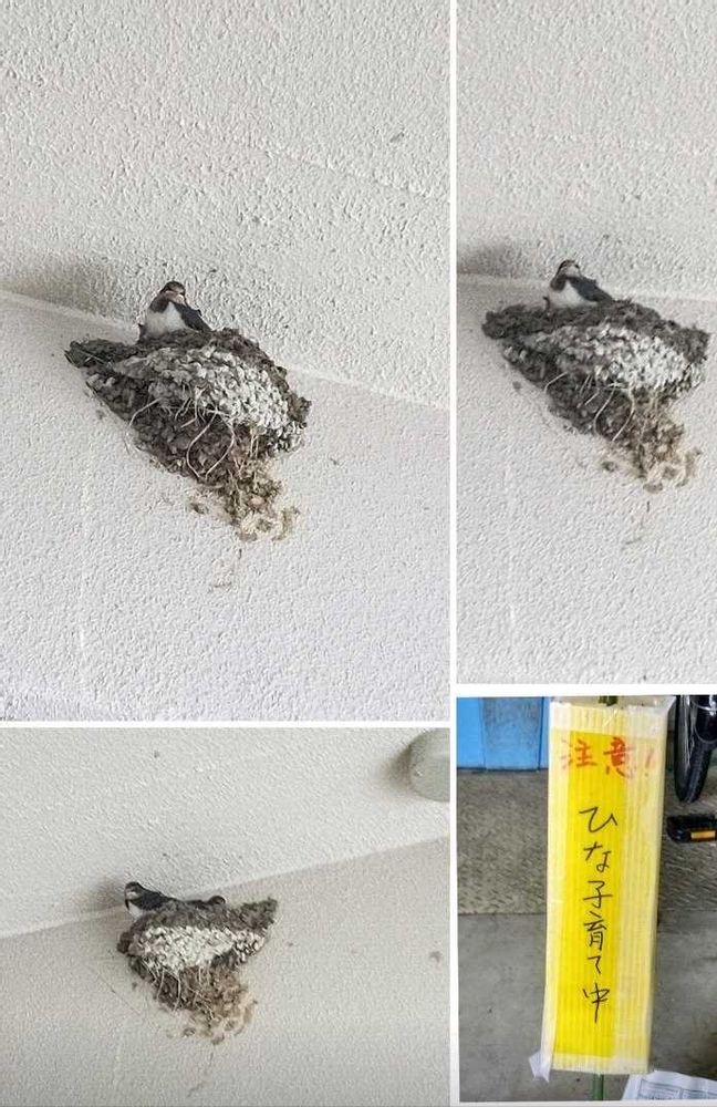 ツバメちゃんの巣、ヒナも見える位置なんて良いな〜♡