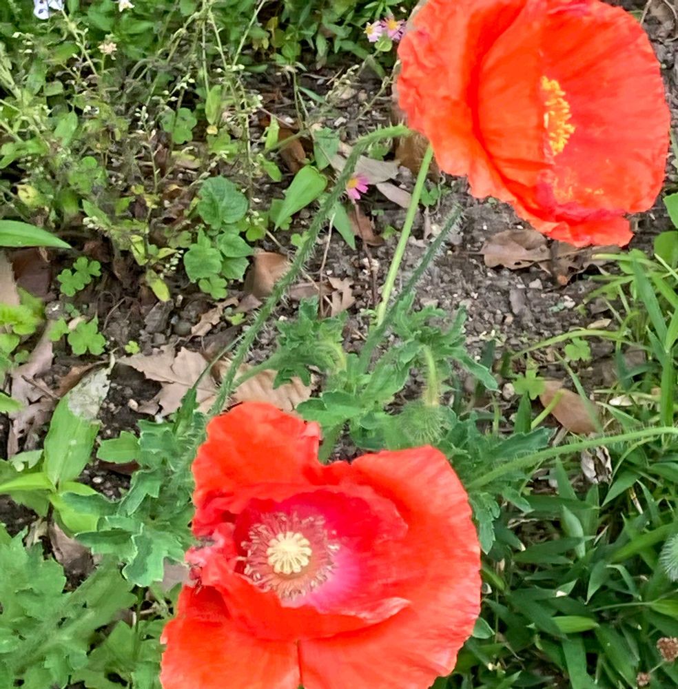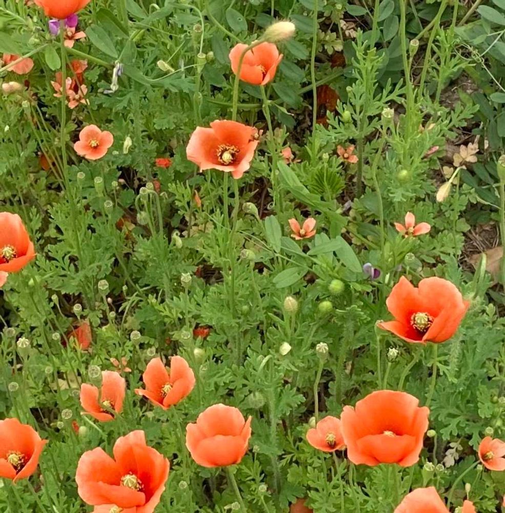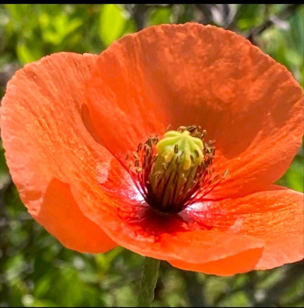 オレンジ色のヒナゲシさん陽を浴びて輝いていますね🟠「ひなげしの曲がりては立ち白き陽に」(山口青邨) 穏やかな一日にして下さいネ🤗☘️🤗