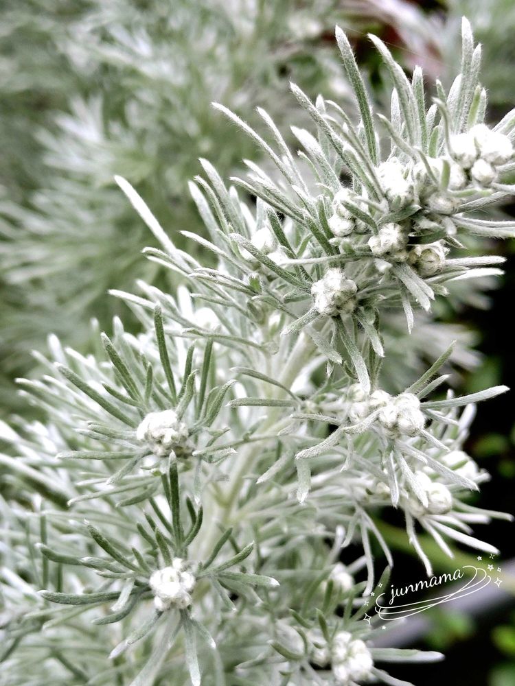 ① アサギリソウにつぼみがついています