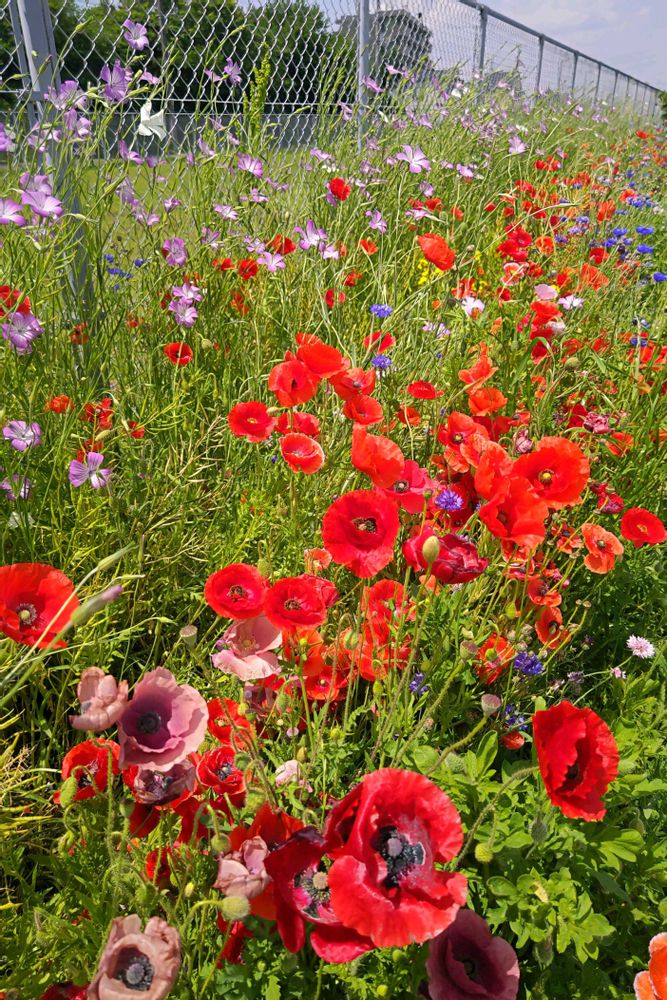 毎年この場所でヒナゲシとムギナデシコの競演を見る事ができる。