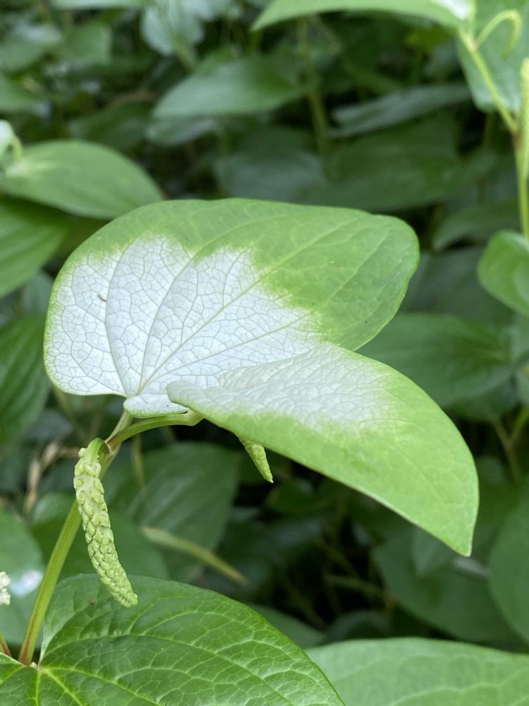 葉っぱの半分ほどが真っ白な白粉を塗ったような様子から「半化粧」とも呼ばれます。