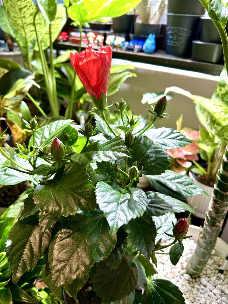 お迎えしちゃいました😊ハイビスカス🌺冬越しした去年のハイビスカスはまだ咲く気配が無いので我慢できずにお迎えしちゃいました😊ハイビスカスを始めるきっかけとなったインドアハイビスカスのサニーシティーです〜😊