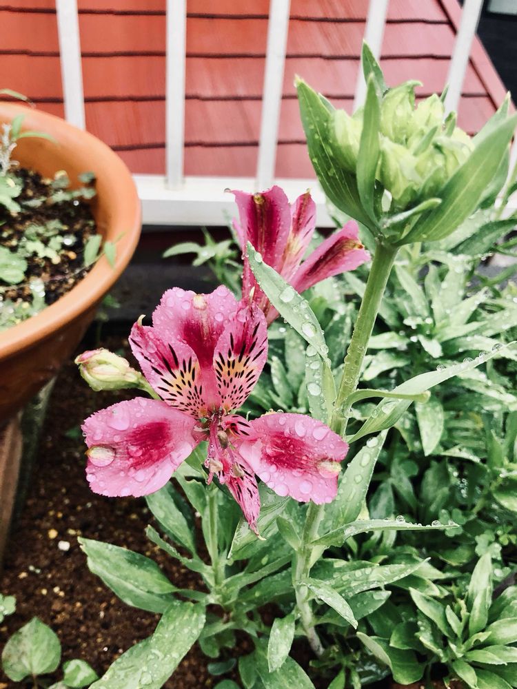ひと月前に咲いていた『アリストロメリア』さん、ミニフェンス横もスクスクと成長し、咲き始めました。時間差あり過ぎですね。