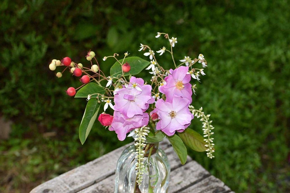 馴染みのユキノシタの線香花火みたいな花は今まで一度も切り花に利用した事がなかったのですが使ってみて凄く気に入りました。清楚で可愛さもアップ、お勧めです。