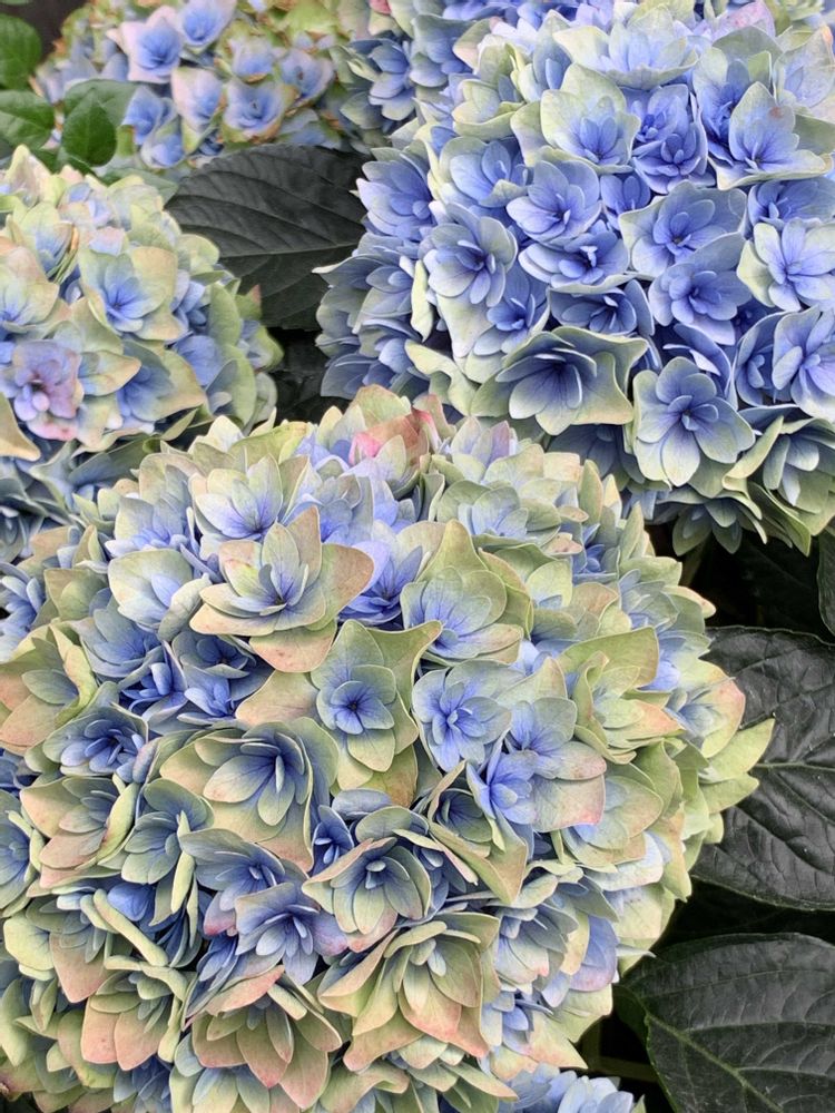 変わった色合いのアジサイ💚💙🩵