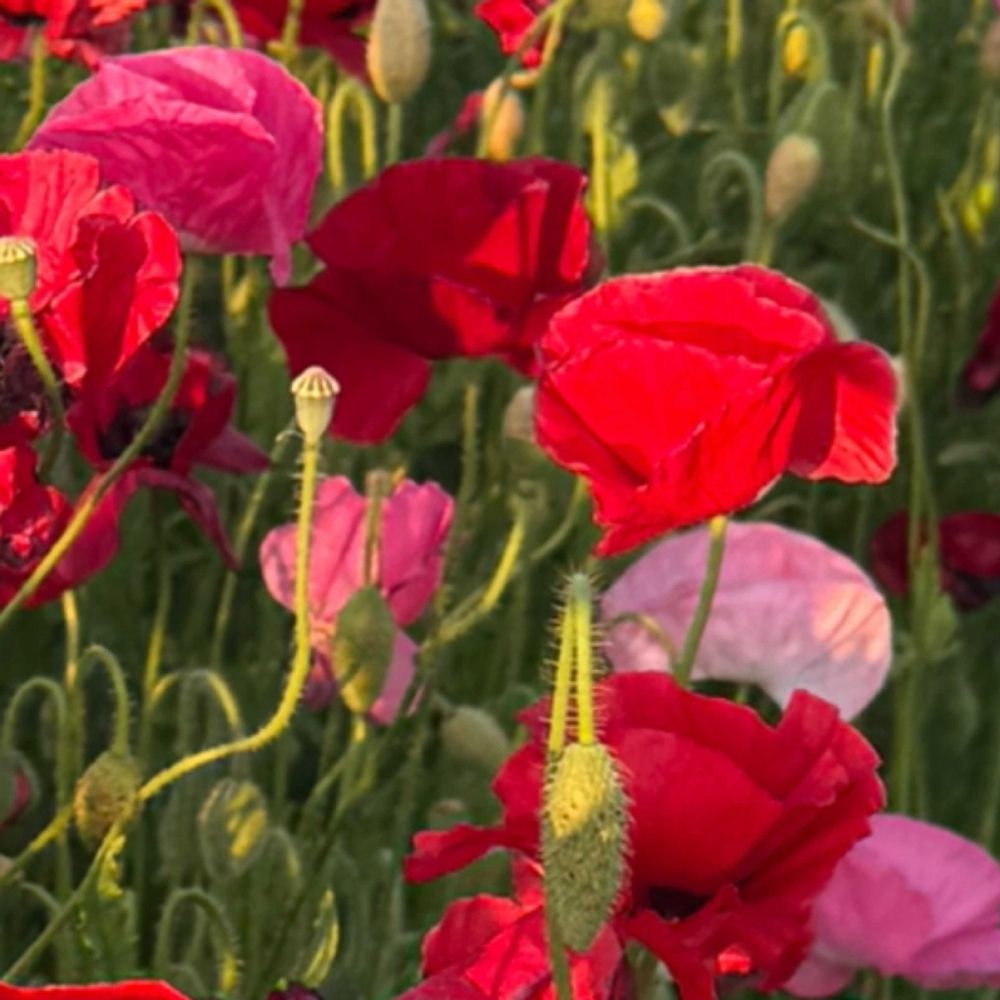 真っ赤なヒナゲシさん陽を浴びて輝いていますね❤️「ひなげしの曲がりては立ち白き陽に」(山口青邨) 穏やかな一日にして下さいネ🤗☘️🤗