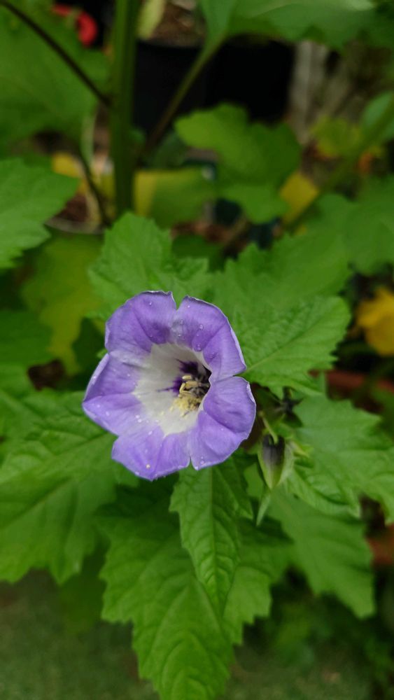 ヤツシロソウ〜先日の山野草展示即売会で持ち帰りました〜でも、見たことあるなぁ〜と、思ってたらカンパニュラの違うバージョンでした〜カンパニュラ種類多いしね〜結構紫が多いみたい〜背が高いから、庭に映えます〜🤍🤍🤍✨✨✨