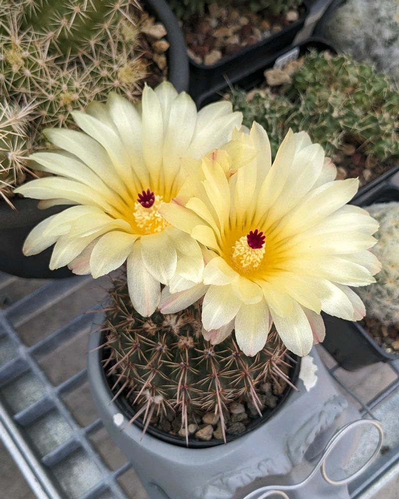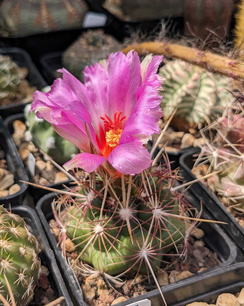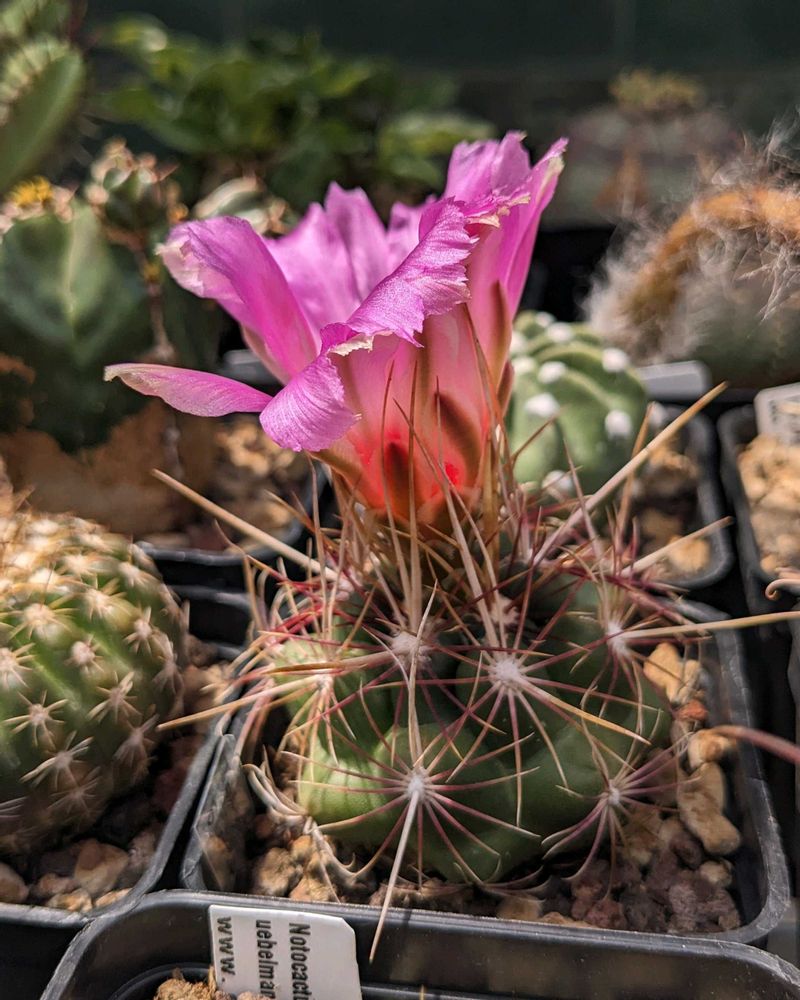 表記はなかったけど、テロカクタスであることに間違いないはず。トゲの色と形が気に入ってお迎えしたけど、花も艶やか。トゲに保護されすぎて全開できてない… この後もうちょっと開いたけど写真を撮りそこねた😅