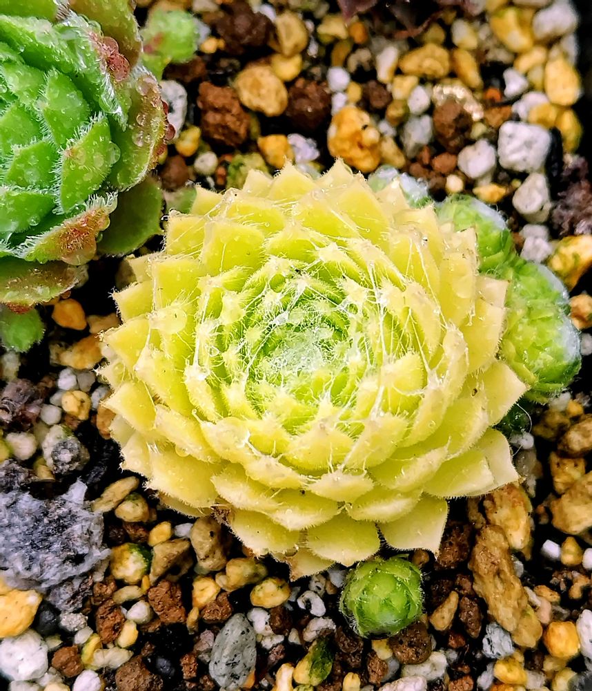 もけもけ系では珍しい黄色系の センペルビウム・レモンフレアさん😻💛🧡🤍💚