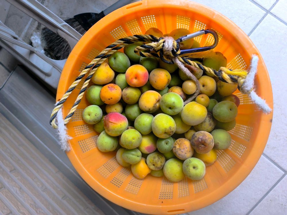 落ち梅。取っててもどうしても取りこぼしが出て落ち梅が出てくる。この時期の梅はヨダレが出るくらい美味しそうな匂いがする。匂いだけなら桃よりも遥かに良い香りだと思う♪梅干し作るにはもう少し完熟した方が良い物ができ〜る