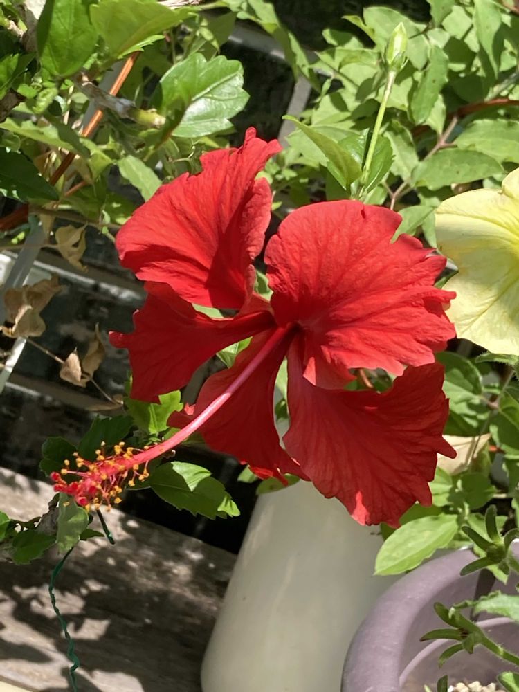 真っ赤なハイビスカス🌺 目が覚めました〜