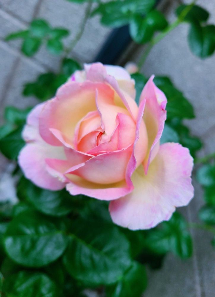 オーブ、淡いピンクと黄色が微妙に混じり合った可愛いバラです✨