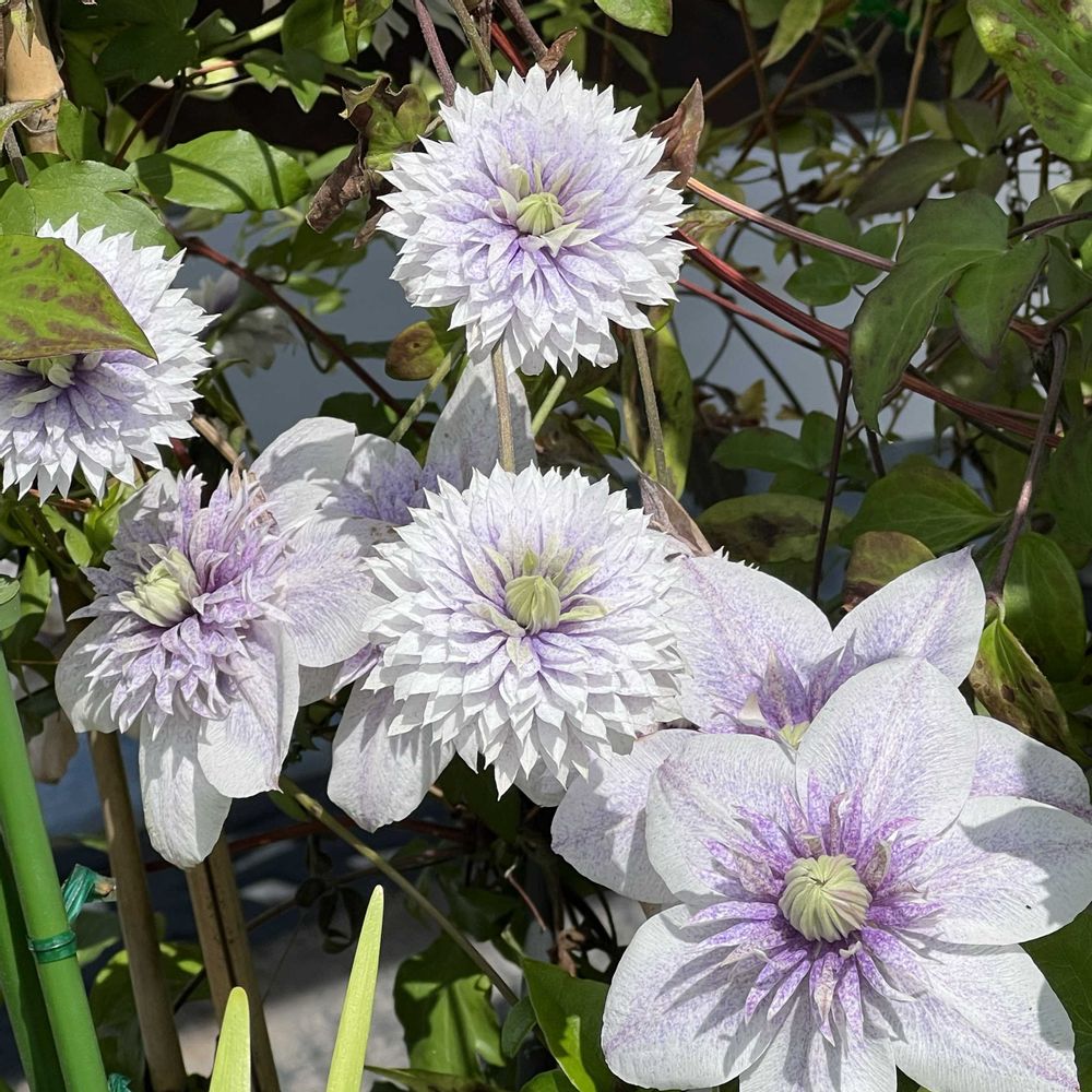 水面の妖精と白万重も、だいぶポンポン咲きにシフトチェンジしてきました😃