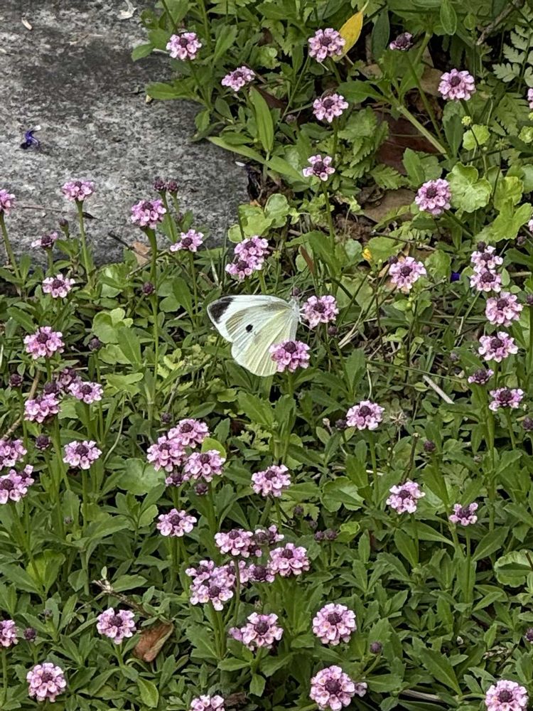 イワダレソウさんにモンシロチョウさん来てくれました♡