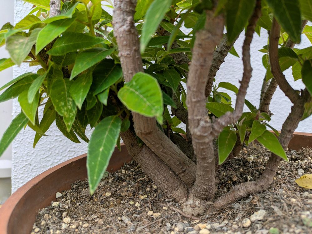 冬は外で過ごし葉がすべて落ちてまるで枯れ木状態だったけど、ここまで復活しました。