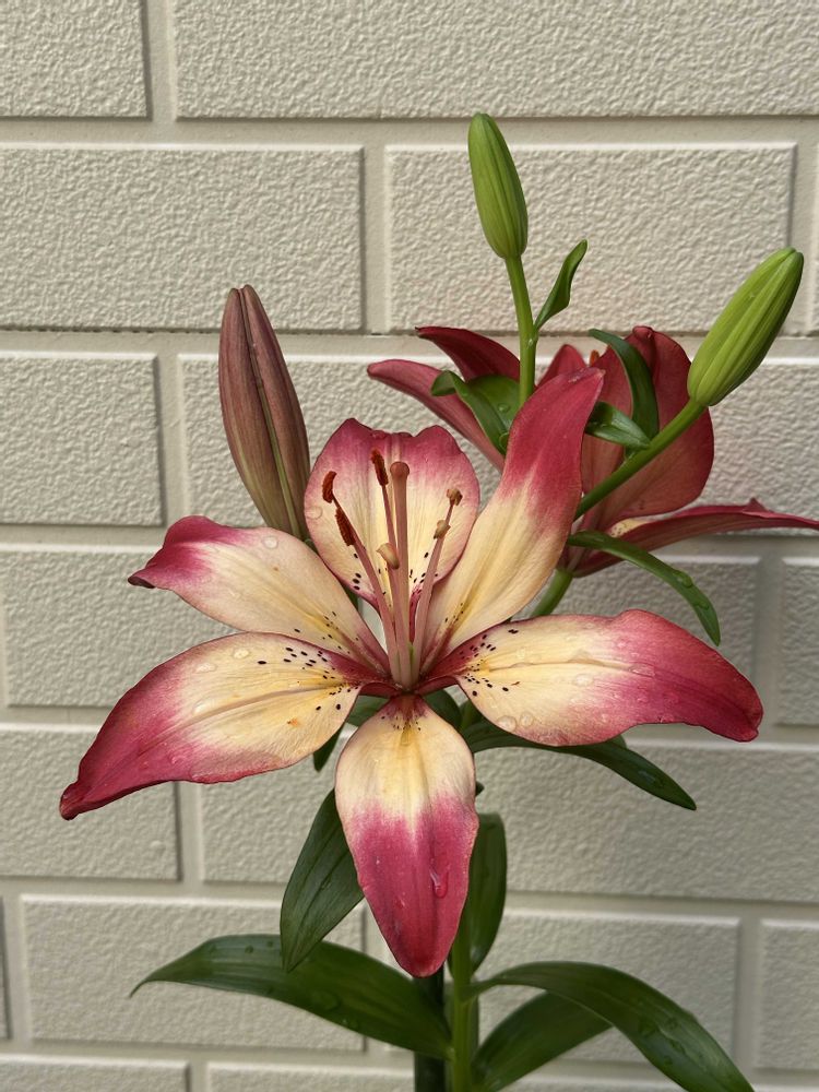 何年も百合はカサブランカか普通の白の鉄砲百合しか植えたことが無かったのだけどたまにはスカシユリのアソートセットなるものを植えてみたのです。どんな花が咲くかはお楽しみ〜みたいなやつ。そしたら派手派手な3種類が咲いたのです。実はあまり好みじゃ無かったけどどうせ咲かないしとそのままにしていたら、今年は芽が出て蕾が付いた!そして私の期待(今年はもう少し地味に咲くかも)はハズレ、また派手派手に咲きました😰