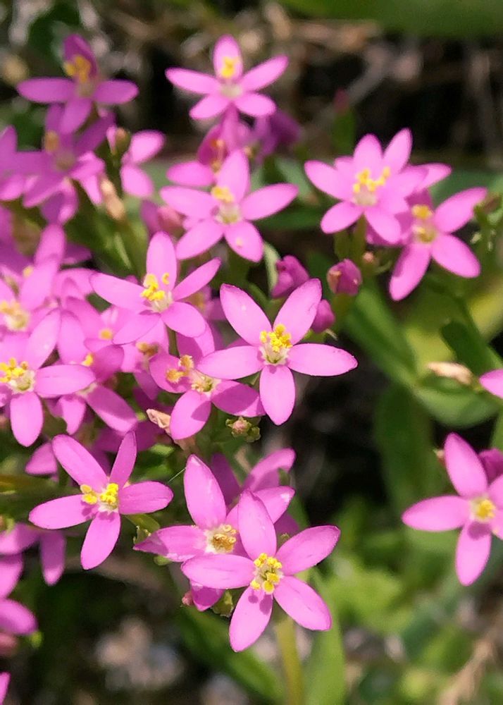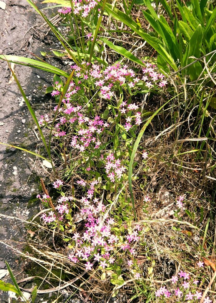 可愛い🩷のお花に出会いました〰帰化植物みたい ハマハナセンブリ? ハナハマセンブリ? 葉は短く目立たない♪