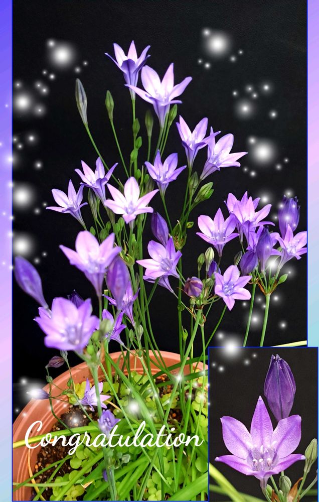 玄関先で咲いている「トリテレイア」(ブローディア)で、お祝いさせて貰いますね💙💜