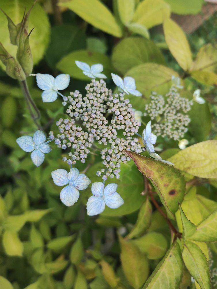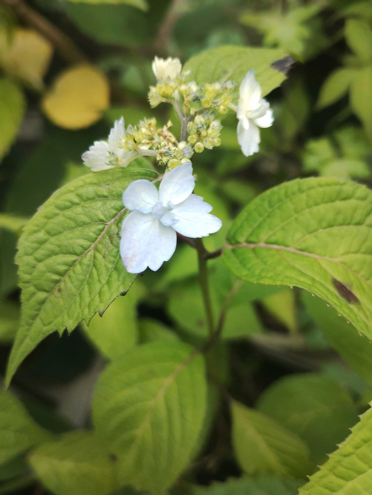 昨年の冬に幾つか山紫陽花の苗買ってて。それが今咲き始めてきました。
