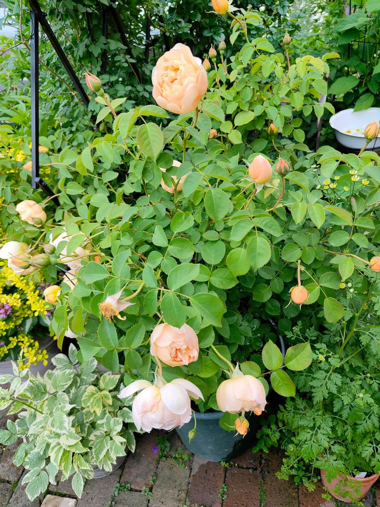 他のバラはまだ小さい蕾なのにこのダナヒューだけは次々と開花しています
