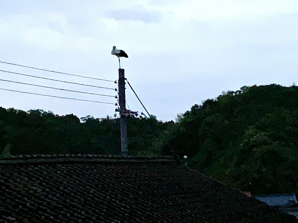きょう咲くかと期待した笹百合は夕方になって先っぽがちょっと開きだした程度😅蕾みのまま💦畑でゴーヤの花が咲いてました😀倒伏した玉ねぎを収穫😀まだお尻が出てますが🤣💦コウノトリさん今日は逃げずにわが家にお泊まり😀お隣りの電柱にめかすかにもう一羽泊まってます😀分かりやすいよう明るく加工してあります😊