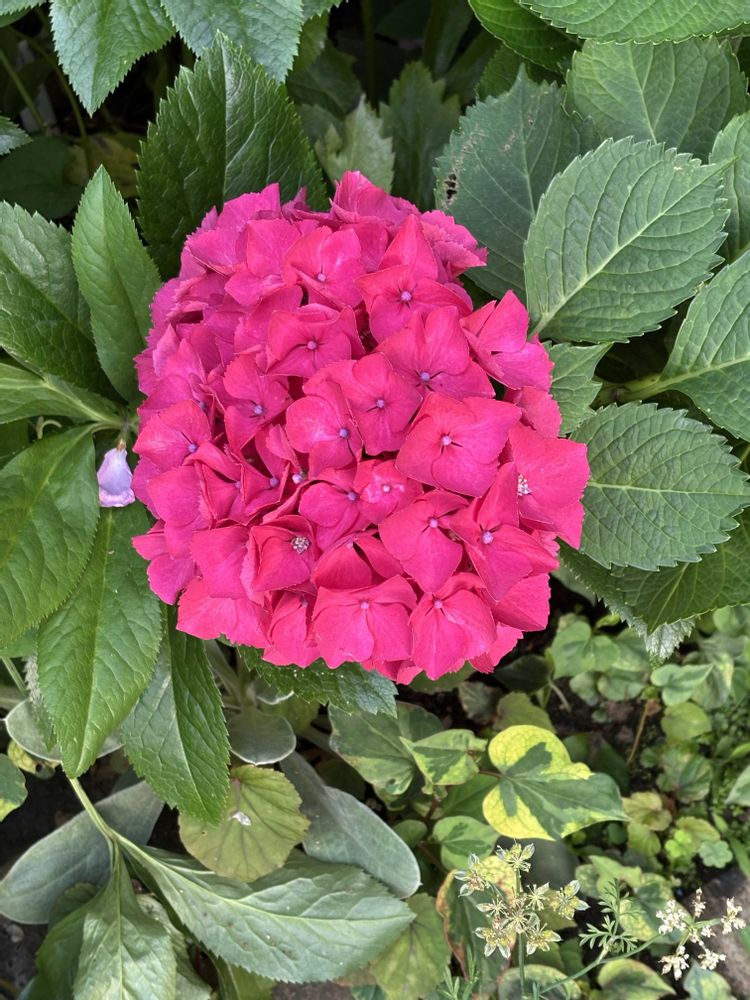 まあ、クレナイかと思うくらい濃い色の、紫陽花ね!